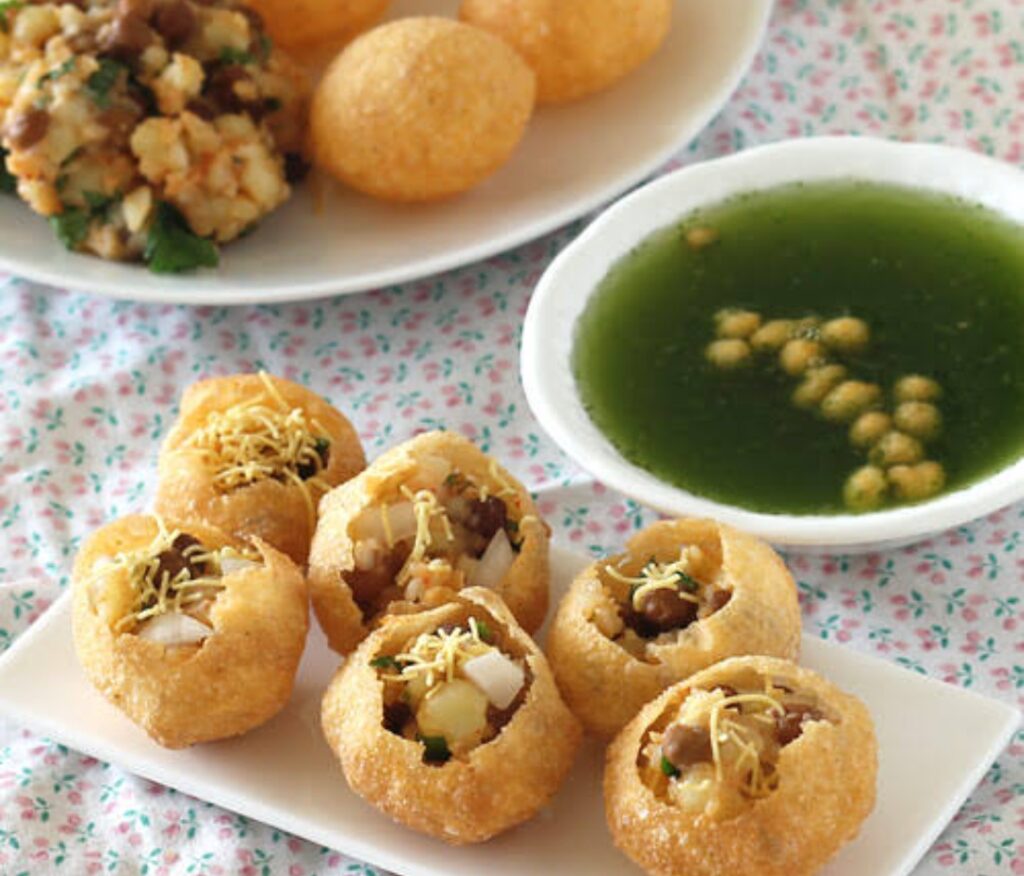 सूजी (रवा) – 1 कपमैदा – 2–3 बड़े चम्मचनमक – स्वादानुसारगर्म पानी – आवश्यकता अनुसारतेल – तलने के लिए—2. पानी (खट्टा-मीठा पानी) की सामग्रीहरा पानीपुदीना – 1 कपहरा धनिया – 1 कपहरी मिर्च – 2–3अदरक – 1 इंचनींबू – 1काला नमक – 1 चम्मचभुना जीरा पाउडर – 1 चम्मचचाट मसाला – 1 चम्मचनमक – स्वादानुसारठंडा पानी – 4–5 कपमीठा पानी (वैकल्पिक)इमली का पेस्ट – 2 चम्मचगुड़ – 3–4 चम्मचकाला नमक – ½ चम्मचभुना जीरा – ½ चम्मच—3. भरावन की सामग्रीउबले आलू – 3–4काला चना या सफेद मटर उबले हुए (वैकल्पिक) – 1 कपनमक – स्वादानुसारलाल मिर्च पाउडर – ½ चम्मचचाट मसाला – 1 चम्मचभुना जीरा – ½ चम्मचहरा धनिया – थोड़ा सा—⭐ बनाने की विधि1. पुरी बनाने की विधि1. एक बाउल में सूजी, मैदा और नमक मिलाएँ।2. धीरे-धीरे गर्म पानी डालकर सख्त आटा गूंध लें।3. आटे को ढककर 15–20 मिनट के लिए रख दें।4. अब आटे की छोटी-छोटी लोइयां बनाएँ और बहुत पतला बेलें।5. किसी छोटे ढक्कन/कटर से गोल पुरी काट लें।6. कढ़ाई में तेल गरम करें और पुरी को फूलने तक कुरकुरी तल लें।पुरी तैयार है!—2. पानी बनाने की विधिहरा पानी1. पुदीना, धनिया, हरी मिर्च, अदरक, नींबू का रस और थोड़ा पानी मिक्सर में डालकर बारीक पेस्ट बना लें।2. इसे बड़े बर्तन में डालें और 4–5 कप ठंडा पानी मिलाएँ।3. काला नमक, जीरा पाउडर, चाट मसाला और स्वादानुसार नमक डालें।4. 1 घंटे के लिए फ्रिज में ठंडा होने दें।मीठा पानी1. इमली पेस्ट और गुड़ को पानी में 5 मिनट उबालें।2. ठंडा होने पर इसमें मसाले मिलाएँ।—3. भरावन तैयार करना1. उबले आलू मैश करें।2. उबले काले चने/मटर डालें।