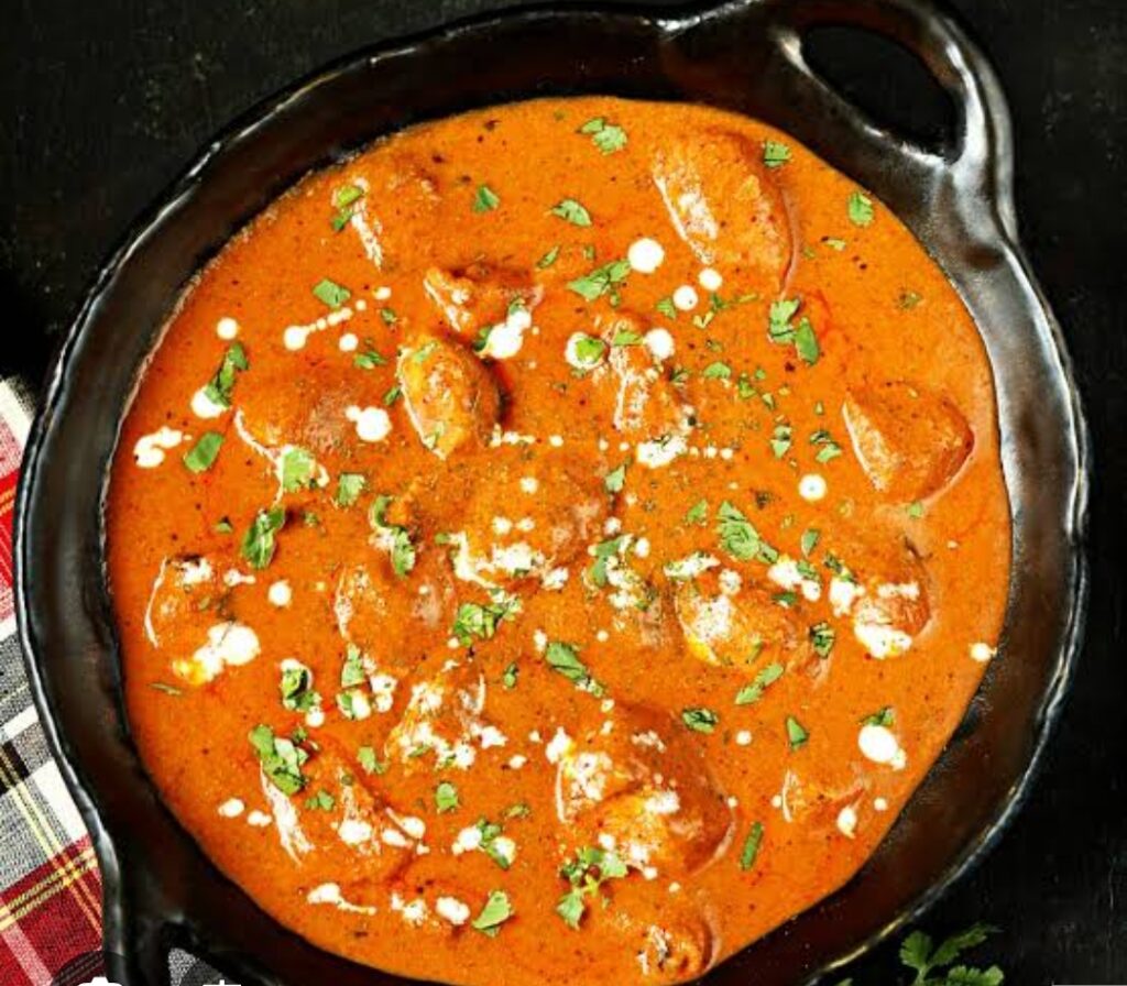 एक बाउल में दही, अदरक-लहसुन पेस्ट, लाल मिर्च, हल्दी, गरम मसाला, नींबू रस, नमक और तेल मिलाएँ।2. चिकन डालकर अच्छे से मिक्स करें।3. 30 मिनट से 2 घंटे तक मैरिनेट होने दें।—स्टेप 2: चिकन पकाएँ1. एक पैन में थोड़ा तेल गर्म करें।2. मैरिनेट किया हुआ चिकन डालकर 8–10 मिनट तक हल्का सुनहरा होने तक पकाएँ।3. अलग रख दें।—स्टेप 3: ग्रेवी तैयार करें1. पैन में बटर और तेल गरम करें।2. तेजपत्ता, दालचीनी, लौंग, काली मिर्च डालें और भूनें।3. प्याज़ डालकर हल्का भूरा होने तक पकाएँ।4. अदरक-लहसुन पेस्ट डालकर 1 मिनट भूनें।5. कटे हुए टमाटर और काजू डालें, नरम होने तक पकाएँ।6. इसे ठंडा करके ब्लेंडर में स्मूद पेस्ट बना लें।—स्टेप 4: ग्रेवी में मसाले डालें1. उसी पैन में थोड़ा बटर डालें।2. प्याज़-टमाटर का तैयार पेस्ट डालें।3. लाल मिर्च पाउडर, धनिया पाउडर और नमक डालें।4. 5–7 मिनट पकाएँ।—स्टेप 5: चिकन और क्रीम डालें1. ग्रेवी में पकाया हुआ चिकन डालें।2. ½ कप पानी डालें और 5 मिनट पकाएँ।3. क्रीम डालकर धीमी आंच पर अच्छी तरह मिलाएँ।4. आखिर में कसूरी मेथी और चीनी डालकर 2 मिनट और पकाएँ।