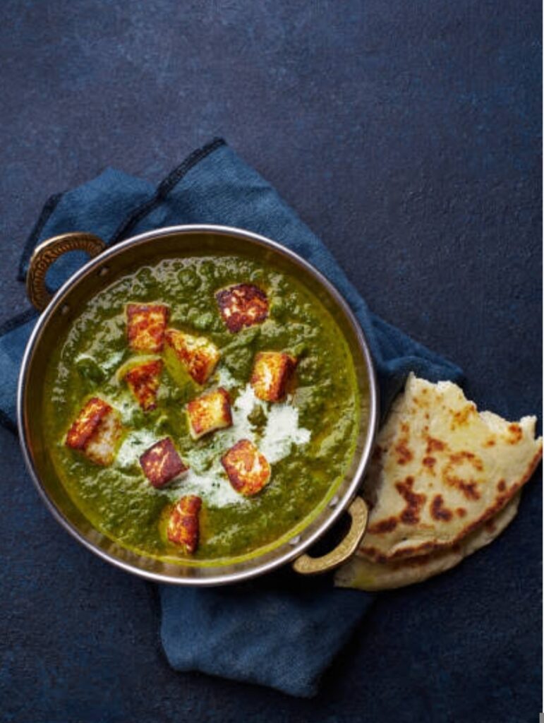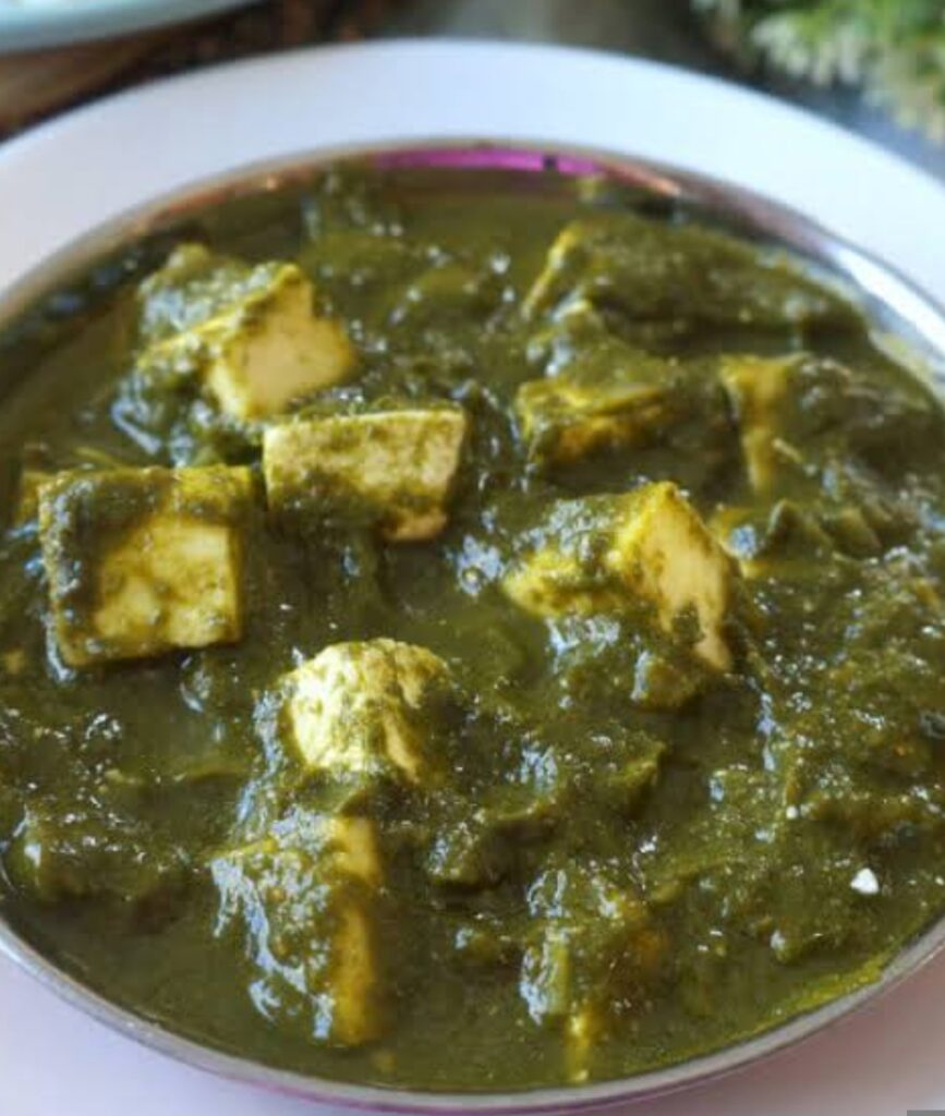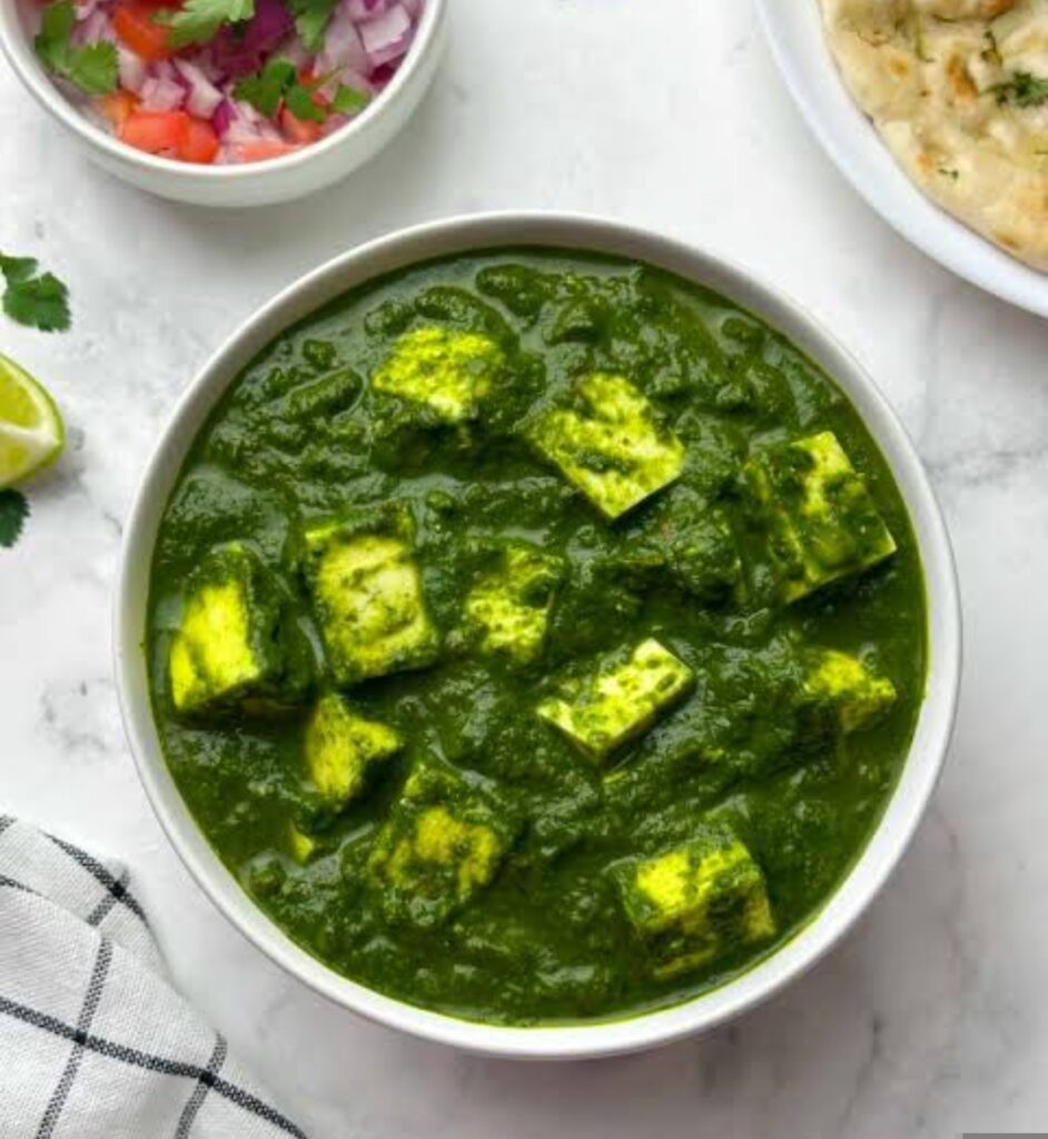 1. पालक ब्लांच करना:1. पानी में थोड़ा नमक डालकर उबालें।2. पालक के पत्ते डालकर 2–3 मिनट उबालें।3. पालक को छानकर तुरंत ठंडे पानी में डालें (रंग हरा बना रहता है)।4. पालक, हरी मिर्च और लहसुन को ग्राइंड कर एक स्मूथ प्यूरी बना लें।—2. ग्रेवी तैयार करना:1. पैन में तेल/घी गरम करें।2. प्याज़ डालकर हल्का सुनहरा होने तक भूनें।3. अदरक-लहसुन पेस्ट डालकर एक मिनट भूनें।4. अब टमाटर या टमाटर प्यूरी डालकर अच्छी तरह पकाएँ।5. मसाले डालें: हल्दी, मिर्च, धनिया पाउडर, नमक।6. मसाला छोड़ने लगे तो पालक की प्यूरी डालें और अच्छी तरह मिलाएँ।7. 3–4 मिनट धीमी आँच पर पकाएँ।—3. पनीर डालें:1. पनीर के क्यूब्स ग्रेवी में डालें।2. 3–4 मिनट हल्की आँच पर पकाएँ (ज़्यादा देर पकाने से पनीर कड़ा हो सकता है)।3. अंत में कसूरी मेथी और गरम मसाला डालें।4. चाहें तो थोड़ा क्रीम डालकर मिक्स करें।—🍽️ परोसने के लिए:रोटी, पराठा, नान या जीरा राइस के साथ गरमागरम परोसें।—
