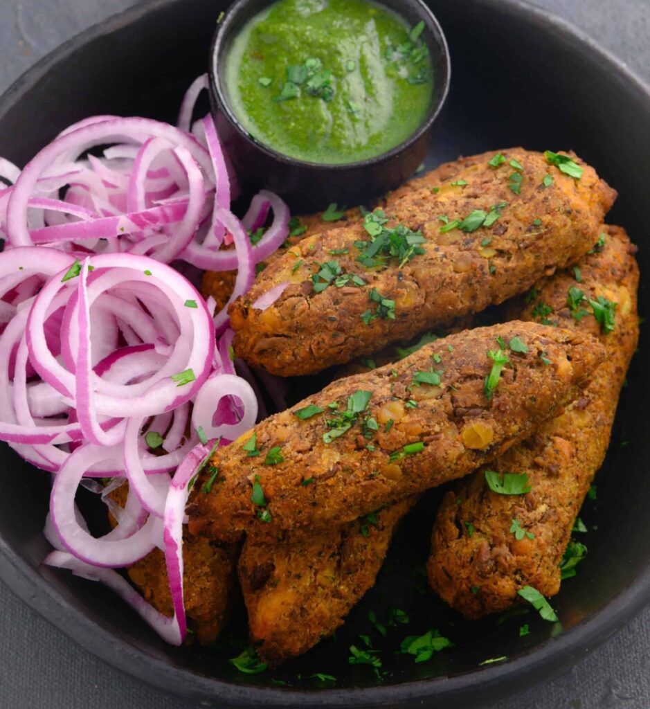 मिक्स सब्ज़ियाँ (गाजर, मटर, बीन्स, शिमला मिर्च) को उबालें और पानी निचोड़कर बारीक मैश कर लें।उबले हुए आलू भी मैश कर लें।🔹 Step 2: मिश्रण तैयार करेंएक बड़े बर्तन में – मैश की हुई सब्ज़ियाँ + आलू + अदरक-लहसुन पेस्ट + हरी मिर्च + हरा धनिया डालें।सारे मसाले डालें: लाल मिर्च, गरम मसाला, धनिया पाउडर, चाट मसाला, नमक।नींबू का रस डालें।अब इसमें ब्रेड क्रम्ब्स और भुना बेसन डालकर अच्छे से मिक्स करें।👉 (अगर मिश्रण गीला लगे, तो और ब्रेड क्रम्ब्स डालें।)🔹 Step 3: कबाब बनाएंमिश्रण से छोटे-छोटे ओवल या राउंड शेप के कबाब बना लें।चाहें तो उन्हें सीख (skewers) में लगाकर सीधा शेप दे सकते हैं।🔹 Step 4: पकाना (Cooking Options)🔸 तवा फ्राय (Tawa Fry):नॉनस्टिक तवे पर थोड़ा सा तेल गर्म करें।कबाब को दोनों तरफ से गोल्डन ब्राउन होने तक सेकें।🔸 बेक करना:180°C पर प्रीहीट ओवन में 15-20 मिनट बेक करें।🔸 एयर फ्रायर में:180°C पर 10-12 मिनट, बीच में एक बार पलटें।—🥗 सर्विंग आइडियाज़:हरी चटनी और दही या इमली की चटनी के साथ परोसें।प्याज के लच्छों और नींबू के साथ सर्व करें।—